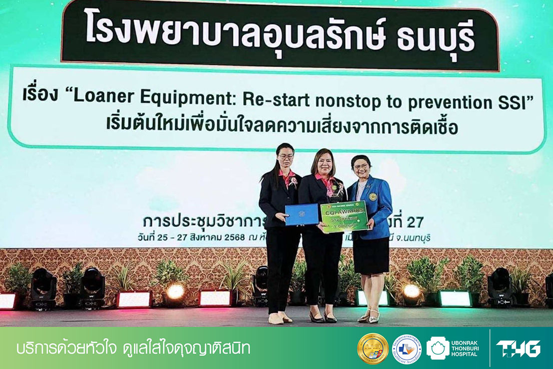 ขอแสดงความยินดีกับแผนก CSSD ได้รับรางวัลชมเชย จากผลงาน “Loaner Equipment Re-start non stop to prevention SSI”