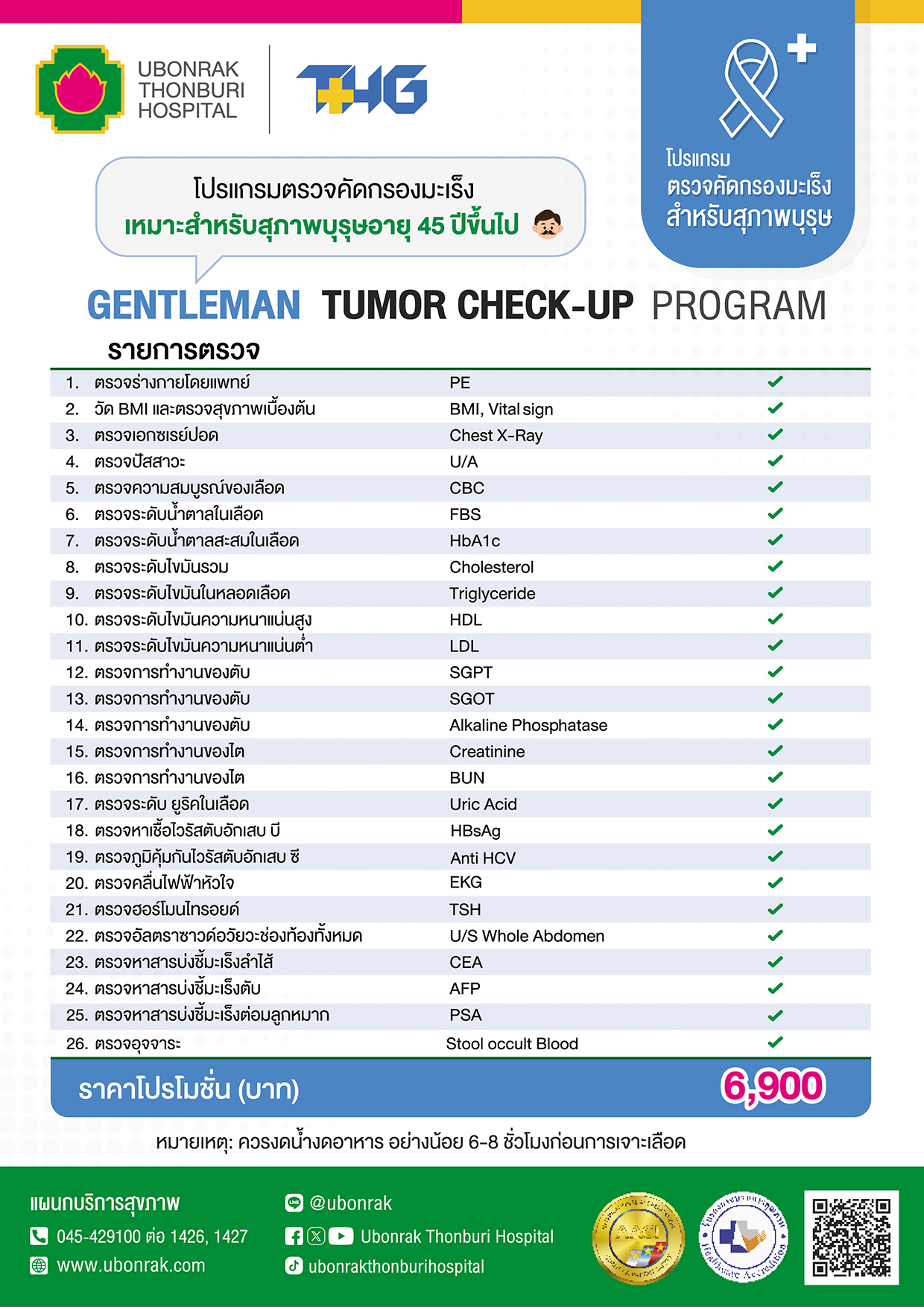 • GENTLEMAN TUMOR CHECK-UP PROGRAM ราคา 6,900 บาท